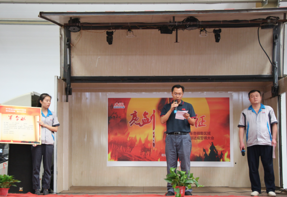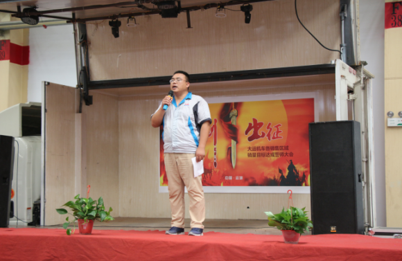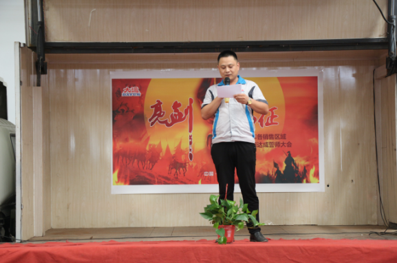 首先,他對周總因公出差不能親臨現(xiàn)場的情況進(jìn)行了說明,并代周總對我們此次誓師大會的所有營銷精英們問好,他表示,周總雖出差在外,但是仍關(guān)心著我們本次大會的召開,所以特將此次誓師大會所有事項(xiàng)授權(quán)委托給我和銷售副總助理盧傳祥,希望我們能夠?qū)⒒顒咏M織好、策劃好,同時希望大家能夠振奮精神,昂揚(yáng)斗志,帶著大運(yùn)公司領(lǐng)導(dǎo)和員工們的信任迎難而上,奮勇拼搏,努力完成9月份銷售任務(wù)目標(biāo)。