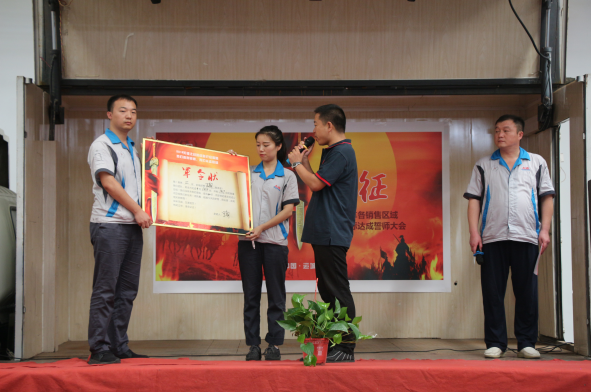 接著,市場處經(jīng)理鄧力對公司9月份的任務(wù)量及目標(biāo)進(jìn)行了宣讀,將目標(biāo)任務(wù)逐層進(jìn)行分解,讓每一位銷售精英們做到心中有數(shù),奮力拼搏。之后,本次活動最為核心的環(huán)節(jié)——營銷精英誓師,在市場處市場管理科主管吳曉旭激情昂揚(yáng)地帶動下隆重開啟,吳主管組織各大區(qū)經(jīng)理逐個上臺,面對現(xiàn)場全體干部員工,激情而又莊嚴(yán)地宣讀了9月份銷量目標(biāo)軍令狀,并鄭重地按下手印,承諾:奮戰(zhàn)30天,使命必達(dá)!宣誓完畢后,公司領(lǐng)導(dǎo)為營銷精英們披綬帶,戴紅花,握手祝福,殷切預(yù)祝他們9月份旗開得勝、馬到功成,達(dá)成宣誓目標(biāo)。
