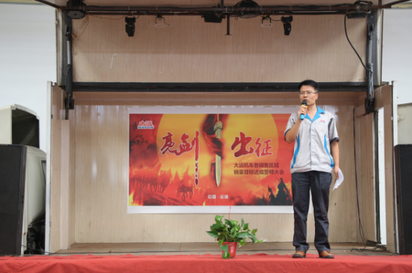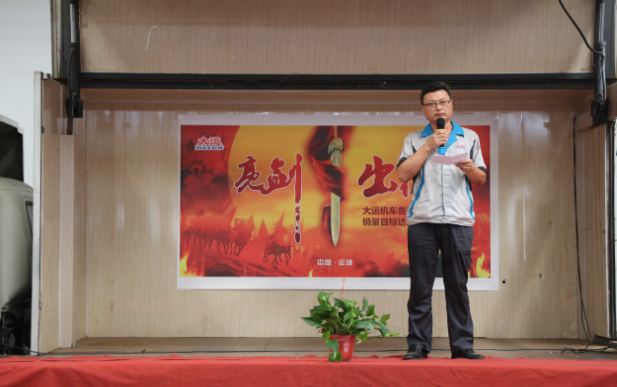 下午14:30,誓師大會在主持人的宣布中正式拉開帷幕。大運(yùn)機(jī)車銷售副總助理盧傳祥首先上臺,對本次營銷精英誓師大會的開幕作了致辭,他希望我們大運(yùn)機(jī)車的銷售精英們,能夠在9月份披荊斬棘,乘風(fēng)破浪,達(dá)成目標(biāo)。