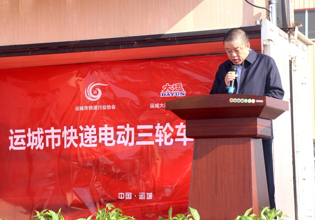 活動開始前,運城市郵政管理局局長、黨組書記董向陽先生作了開幕致辭,他表示郵政快遞行業(yè)是國家重要的社會公用事業(yè),是不可缺少的基礎(chǔ)性行業(yè),在服務(wù)大眾便捷百姓、提高人民日益增長的物質(zhì)、文化生活動方面,有著深刻的內(nèi)涵和意義。同時,董局長就快遞行業(yè)當下的發(fā)展狀況、未來的發(fā)展趨勢做了簡要闡述,對本次快遞車的成功下線交付表示祝賀,對行業(yè)內(nèi)相互融合,相互促進,共同發(fā)展的良好局面提出了高度贊賞。