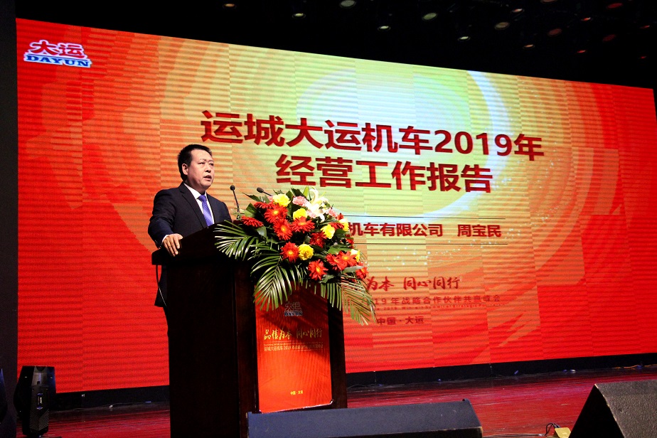 圖:運(yùn)城大運(yùn)機(jī)車總經(jīng)理周寶民先生做2019年經(jīng)營工作報(bào)告