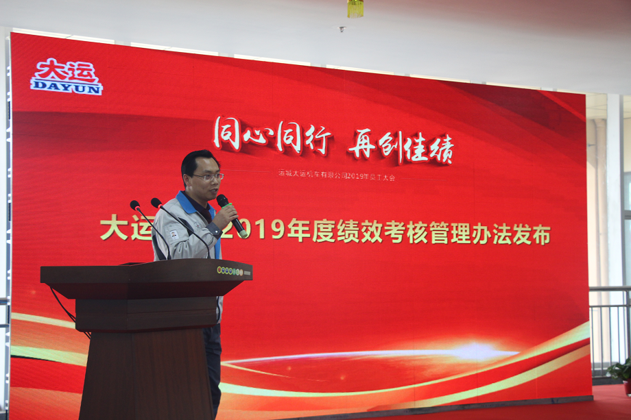 為對2018年全年工作進(jìn)行全面梳理總結(jié),對2019年工作進(jìn)行統(tǒng)一部署,1月29日下午,運(yùn)城大運(yùn)機(jī)車有限公司召開了2019年度工作會議暨2018年度表彰大會。本次會議由總經(jīng)理助理姚占衛(wèi)主持,公司全體員工共計(jì)700余人參加了本次會議。