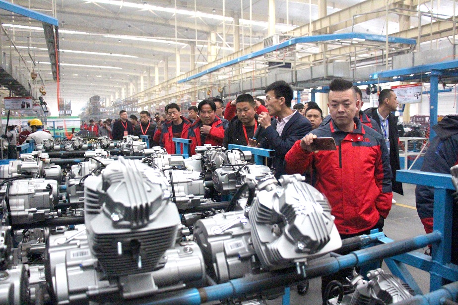 圖:經(jīng)銷商及供應(yīng)商參觀會(huì)議樣車及大運(yùn)三輪制造工廠